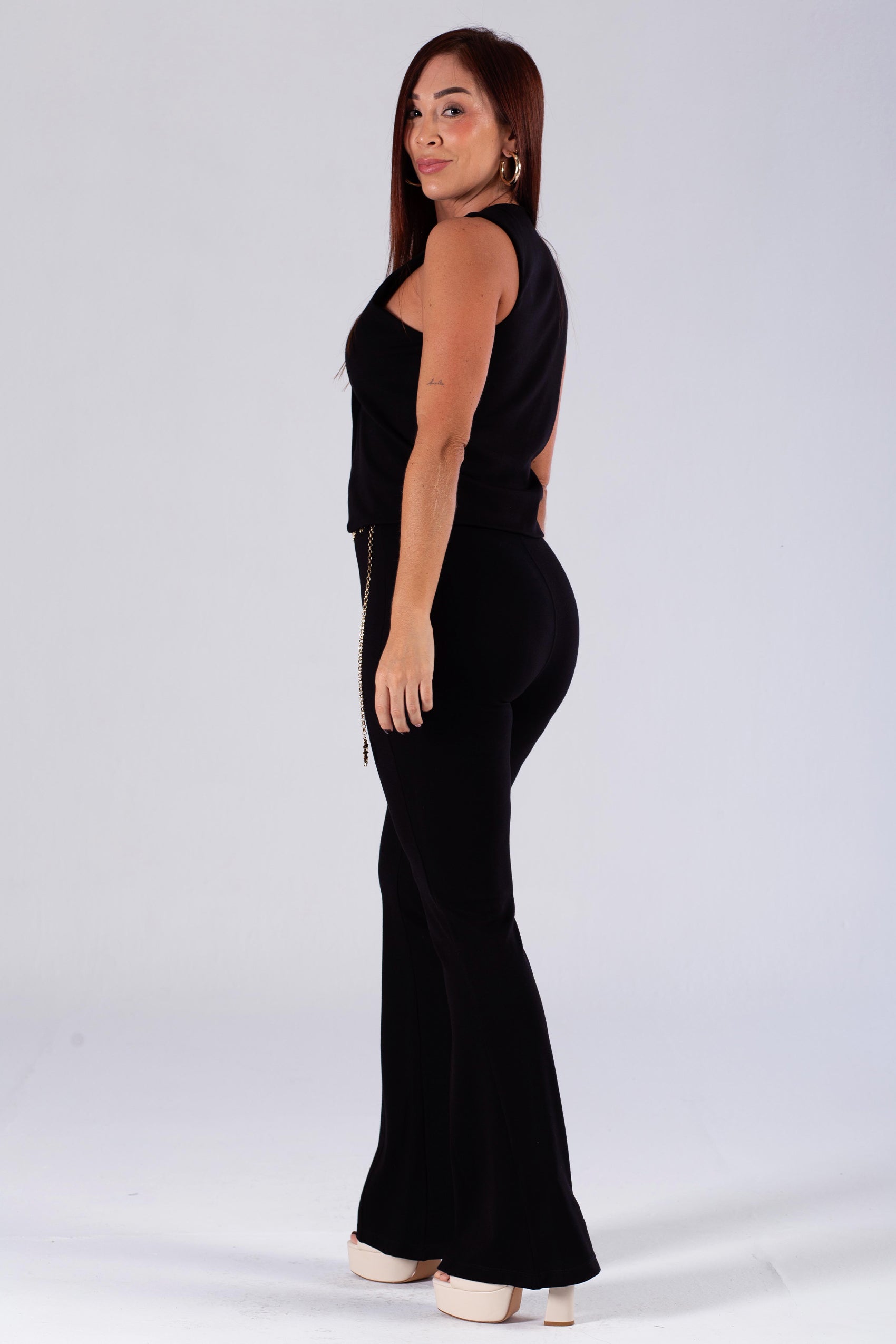 PANTALON TIRO ALTO BOTA CAMPANA CON DETALLE EN PIERNA